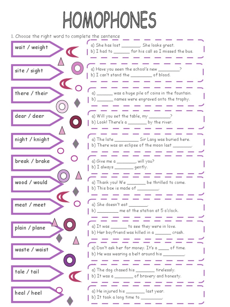 Homophones Worksheet 5